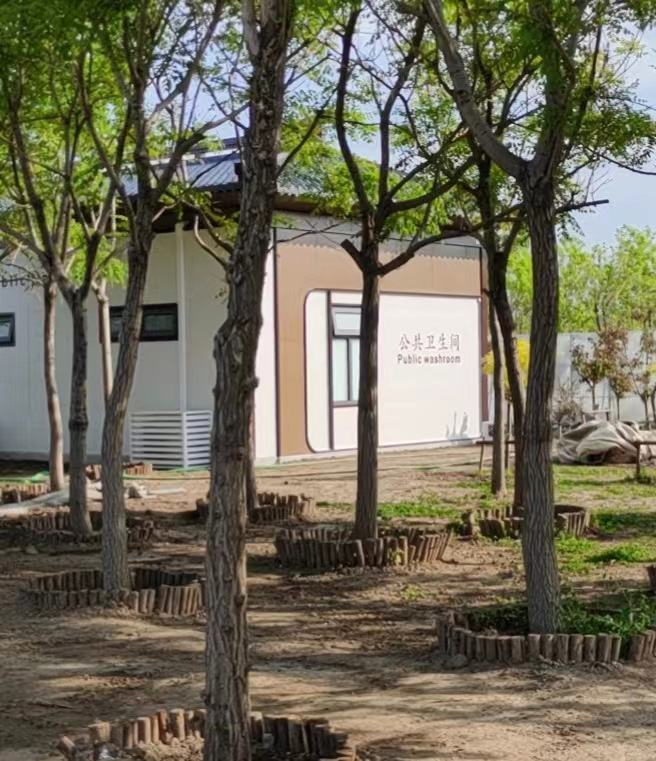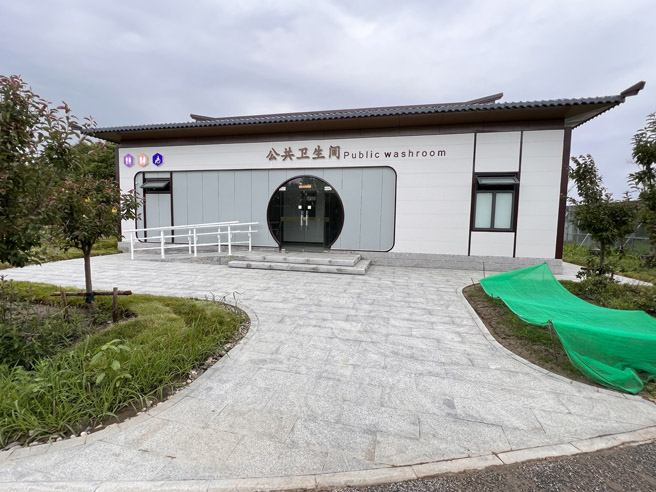 本項目位于天津市中新生態(tài)城媽祖文化園內(nèi)東南角綠化帶處。該建筑為箱體組合裝配式公共衛(wèi)生間,占地面積87.6平方米,廁所基礎為150mm厚C20砼墊層,200mm厚C30鋼筋混凝土墊層。