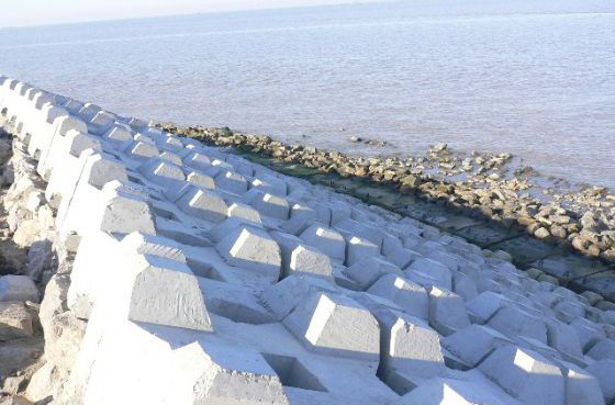 東營港廣利港區(qū)位于萊州灣的西部、廣利河河口處,距東營市城區(qū)約20km,東與膠東半島緊貼相連,西與濱州地區(qū)接壤,南與淄博、濰坊兩市相毗鄰,處在膠東半島和遼東半島的環(huán)抱之中。本工程位于廣利港區(qū)北作業(yè)區(qū)。本工程西側(cè)與廣利港區(qū)防波堤工程相連,東側(cè)至規(guī)劃初期口門,工程全長5126m。其中4+444~8+065為直線段,軸線方位為251°—71°,長度為3621m;8+065~9+570為折線段,軸線方位為259.5°—79.5°,長度為1505m;兩段防波堤軸線夾角約為8.5°。本工程4+444~8+065為出水堤,堤頂高程為2.0m;8+065~9+570堤頂高程由2.0m漸變至-1.0m。